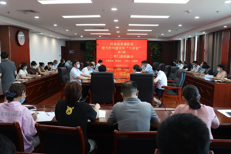 根据省厅“能力作风建设年”活动部署和白菜cp论坛“能力作风建设年”活动安排,7月1日下午,医院组织开展了“大讲堂”第六期,由医务科科长岳丽萍担任主讲,各科室负责人、护士长及行政后勤科室科员共计50余人参加。