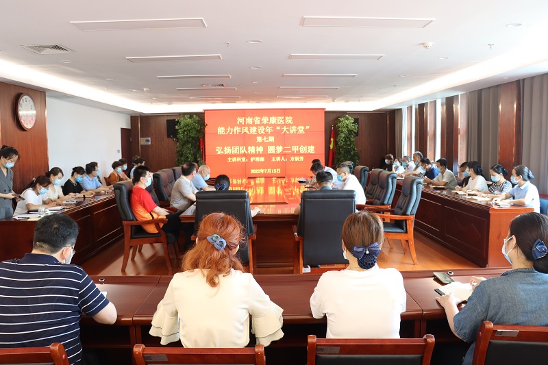 根据省厅“能力作风建设年”活动部署和白菜cp论坛“能力作风建设年”活动安排,7月15日下午,白菜cp论坛组织开展了“大讲堂”第七期,由护理部主任方崇芳担任主讲,各科室负责人、护士长及行政后勤科室科员共计50余人参加。