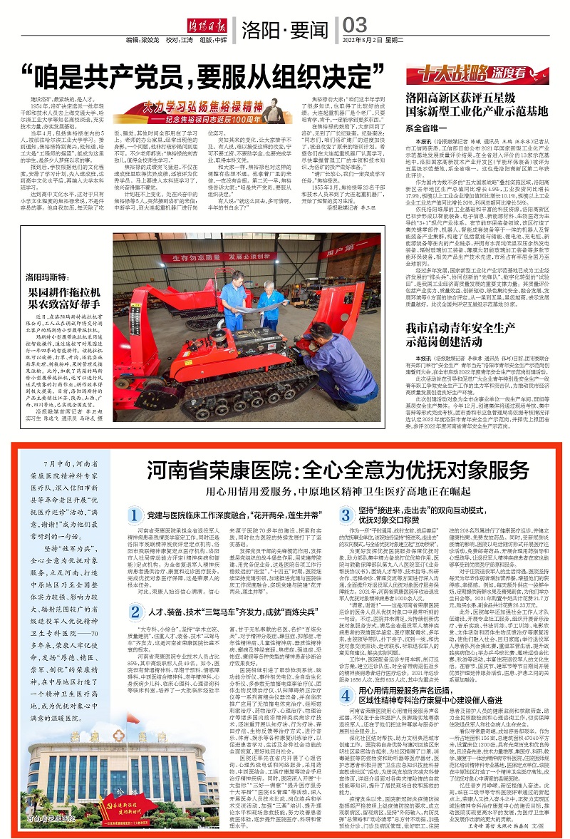 8月2日,《洛阳日报》第17209期,第03版刊登白菜cp论坛报道:《白菜cp论坛:全心全意为优抚对象服务》